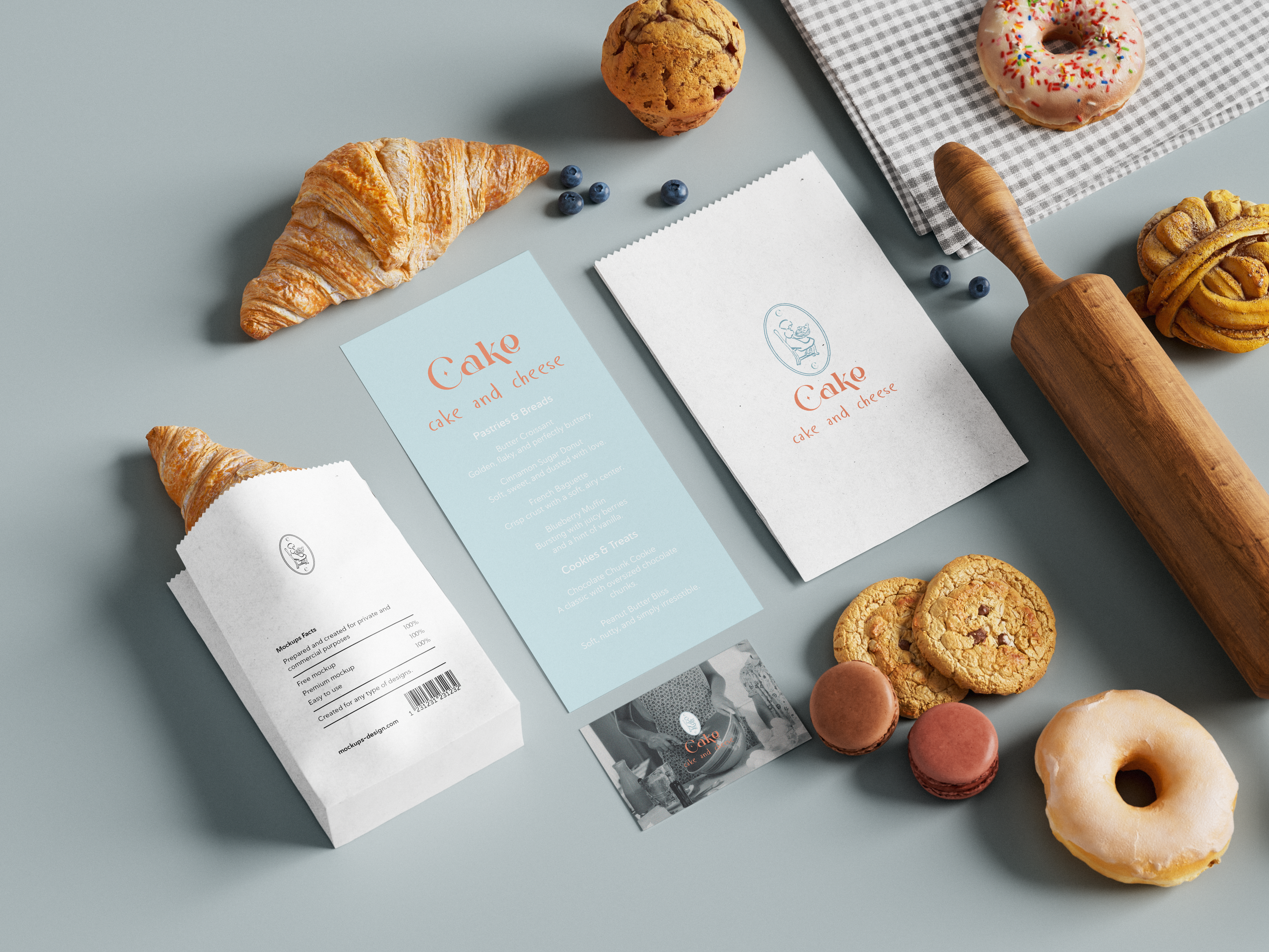 The Cake and Cheese identity features a warm, classic feel inspired by fond memories of home and old family bakeries. The design is based on a classic, circular “stamp” logo, centered on a drawing of a girl cooking with love, embodying the spirit of craftsmanship and attention to detail.