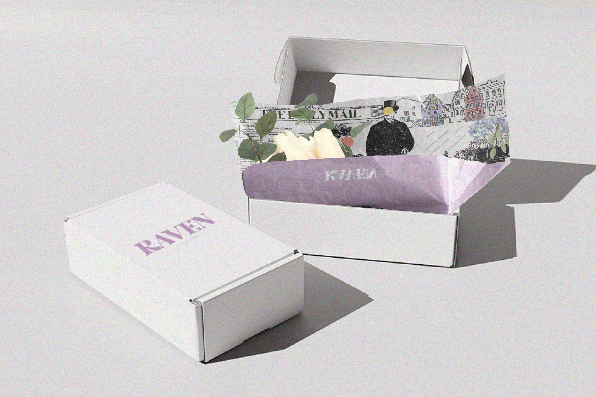 Raven’s identity is embodied in a classic, vintage design inspired by the Victorian era. The design reflects the elegance of the good old days and classic rose bouquets presented in a box