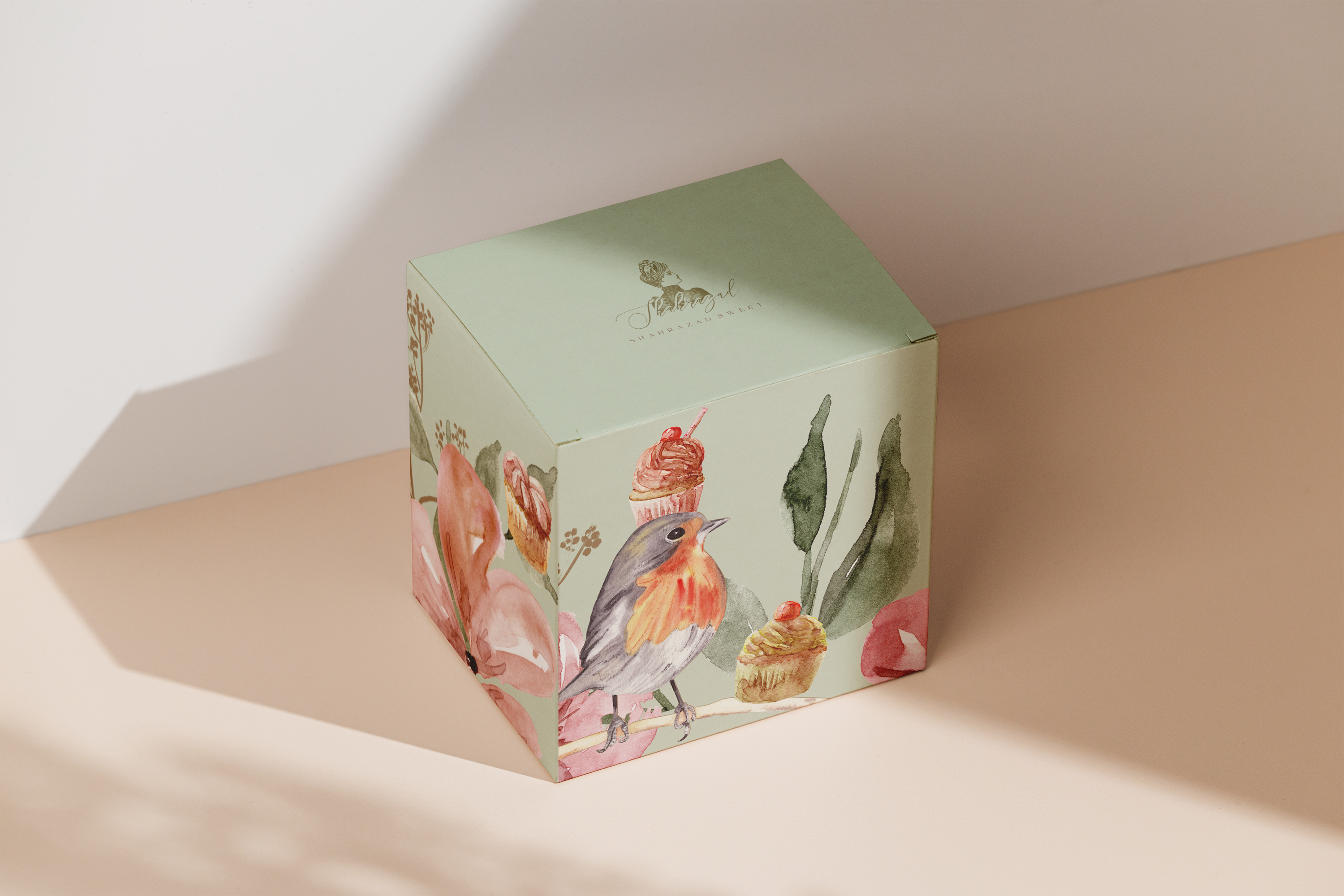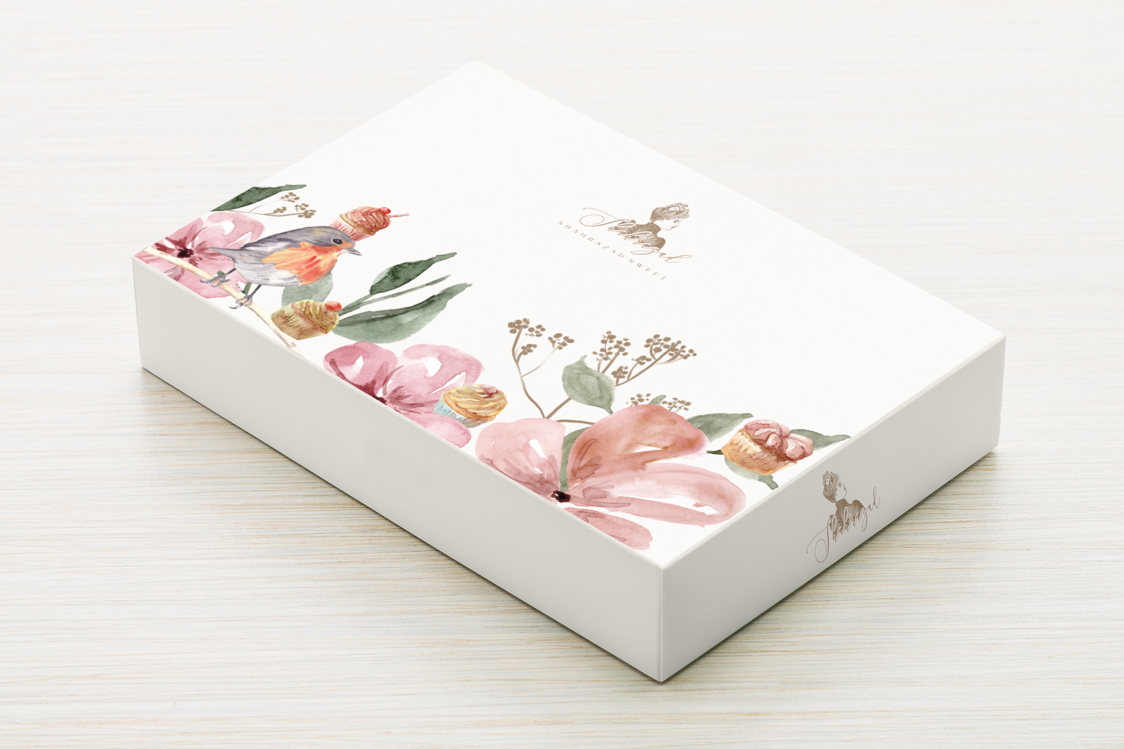 The “Shahrazad” identity embodies the spirit of timeless oriental tales, with a classic, vintage design that exudes the scent of the good old days. The identity relies on decorative elements of roses, cakes, and birds.
